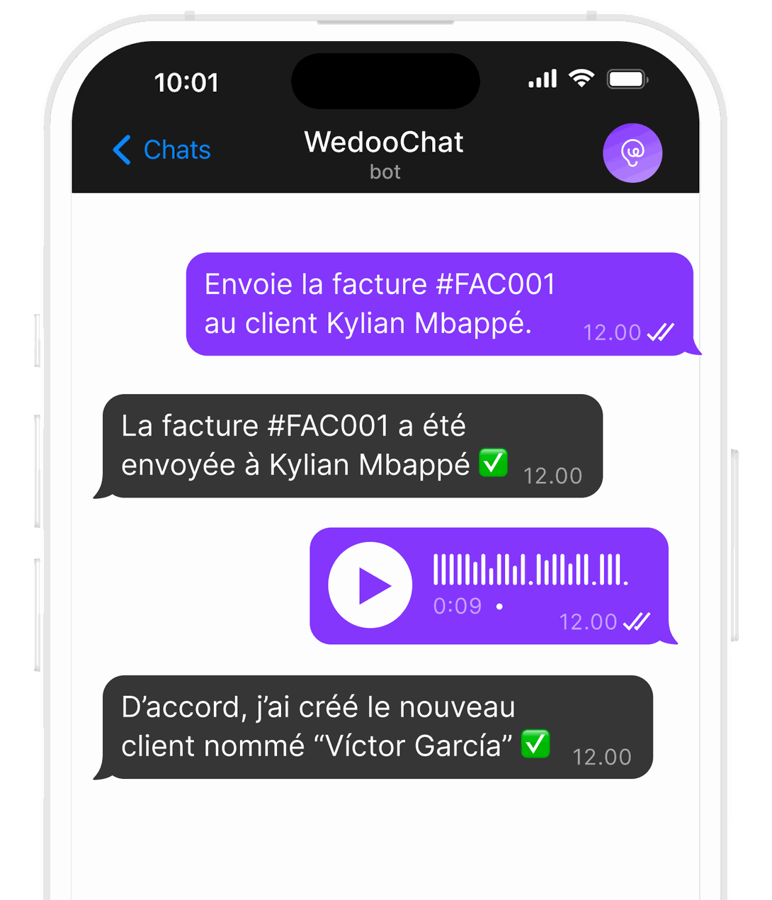 Utiliza Telegram para interactuar directamente con tu base de datos Odoo, ya sea mediante mensajes de texto o mensajes de voz.